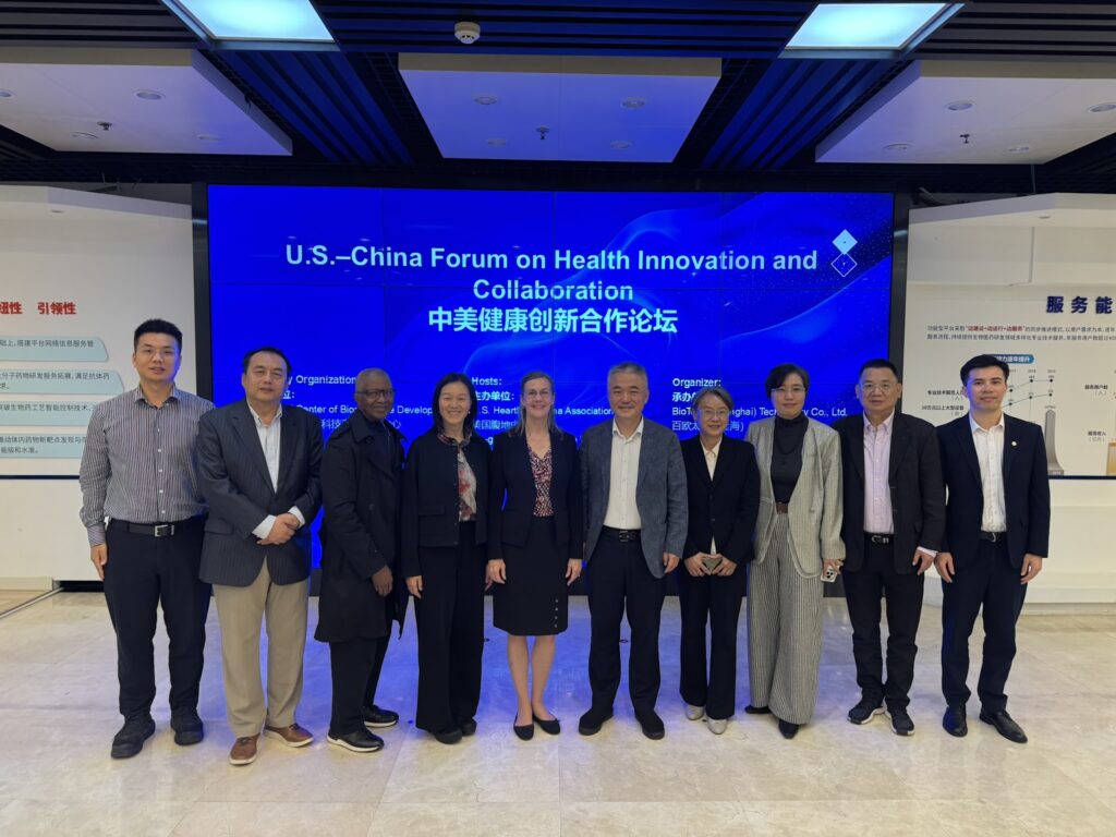 On their last day in China, select members of the delegation participated in the U.S.–China Health Innovation and Collaboration Forum. Partners listed for the forum included the Shanghai Biopharmaceutical Technology Industry Promotion Center and the LinGang Medical Device Innovation Center.