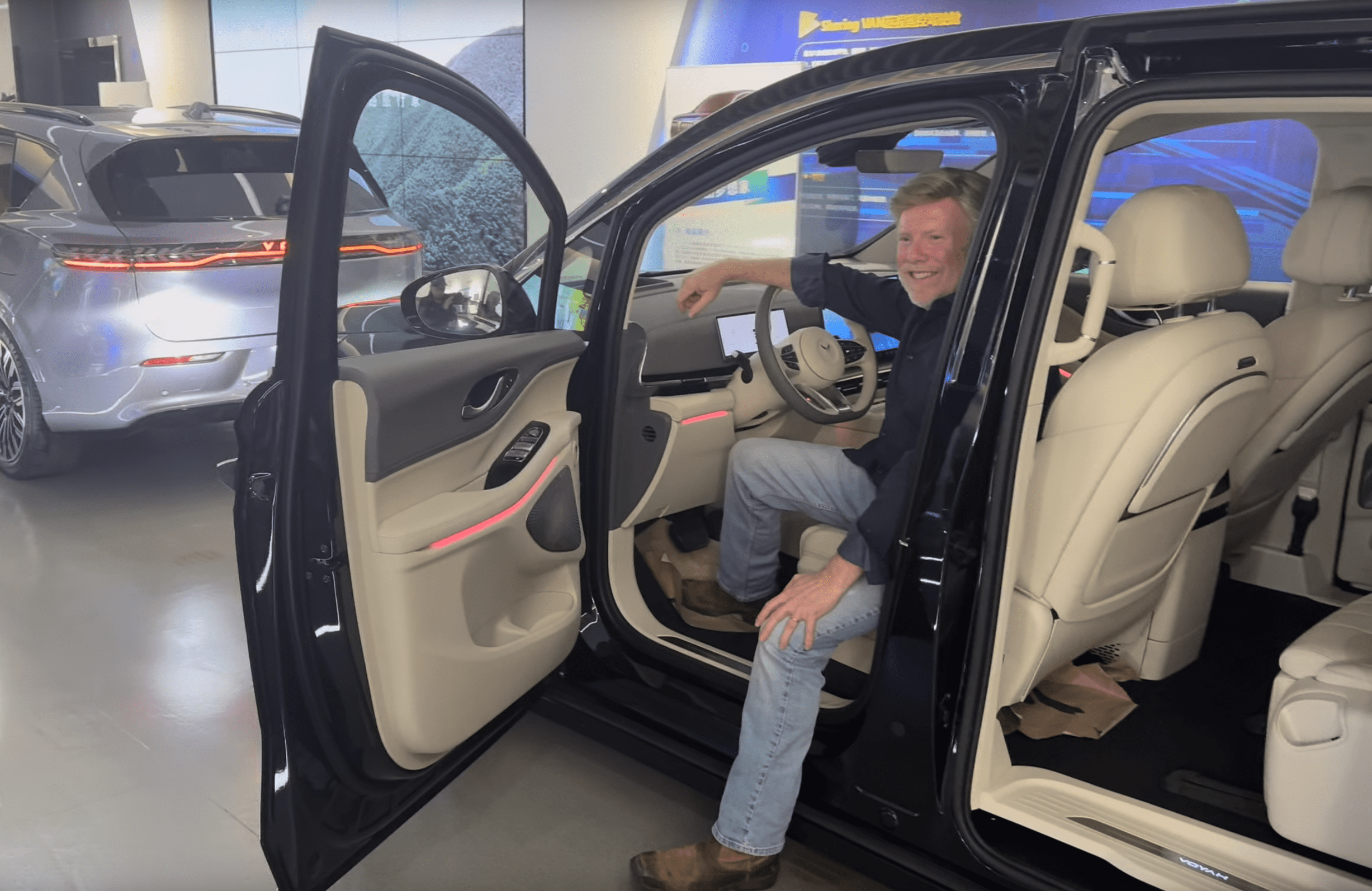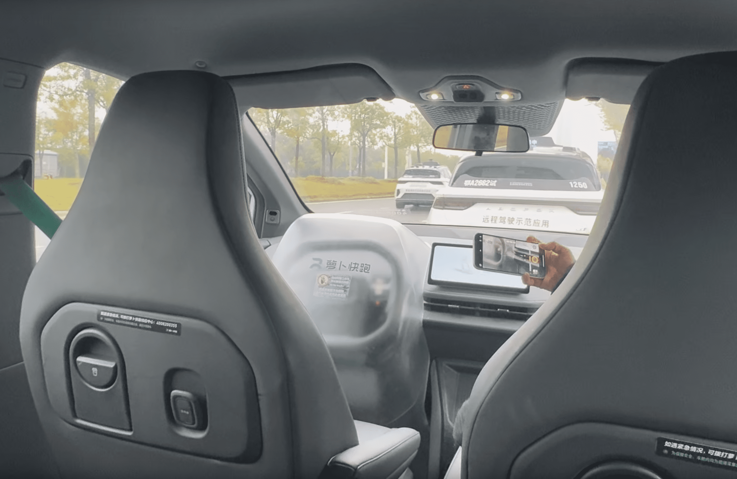 Pictured above from left to right: Mayor Gibson poses for a photo in one of the electric vehicles on display; Delegates experience a self-driving car in the Wuhan Economic Technological Development Zone.
