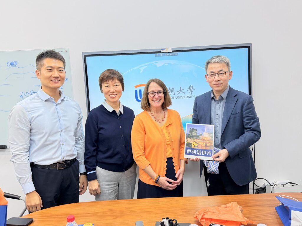 Pictured above from left to right: Xiaoyu Gao (Deputy Director and Head of the Office of International Affairs of West Lake University), Mary Ma (Managing Director at State of Illinois China Office), Mayor Deborah Feinen, and Jianjun Cheng (Vice President of West Lake University).