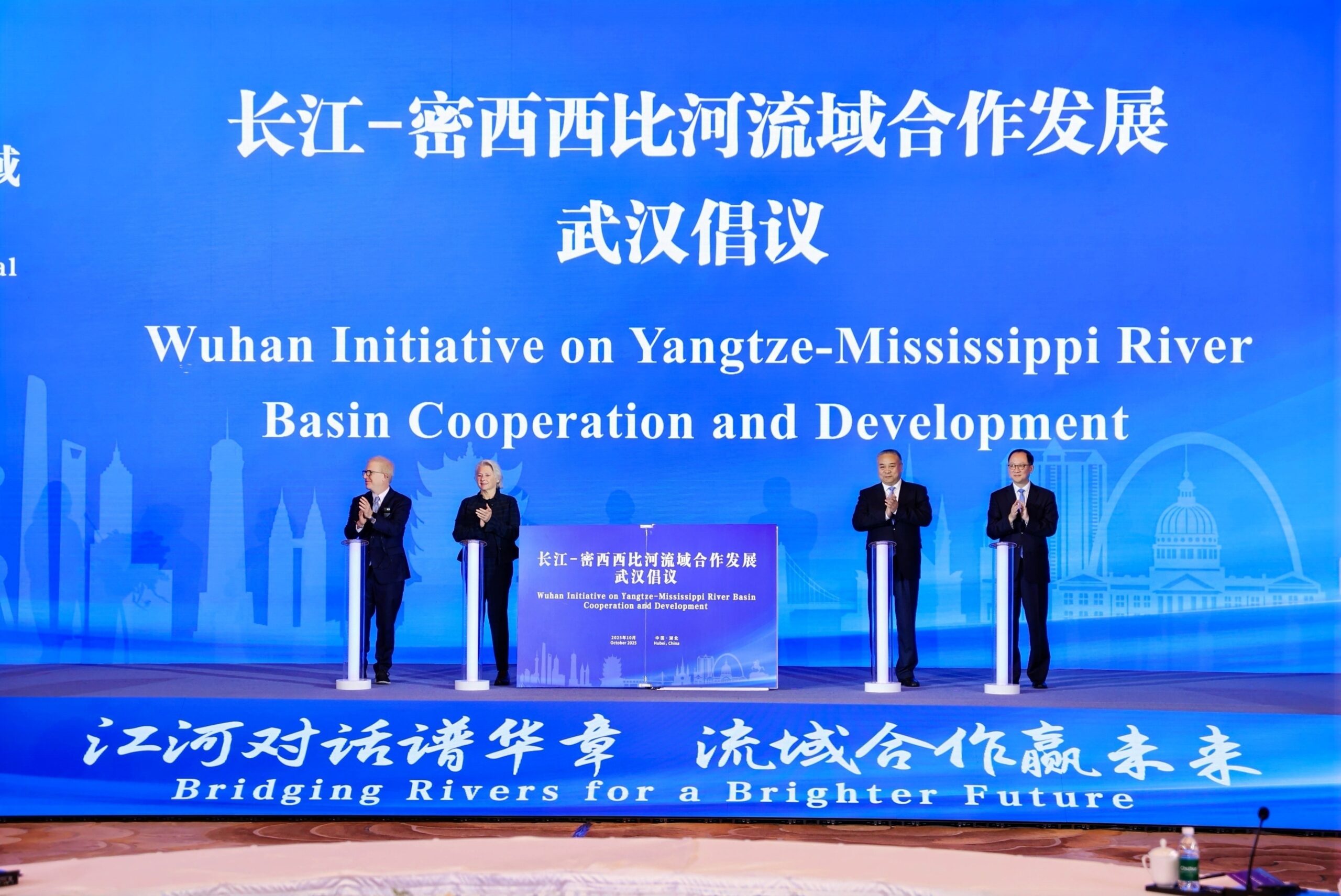 Pictured above from left to right: Signing of the “Wuhan Initiative on Yangtze-Mississippi River Basin Cooperation and Development” at the 2025 Yangtze-Mississippi Regional Dialogue; Signing of the “Shared Vision for Chinese and American Youth Protecting the Great Rivers.”